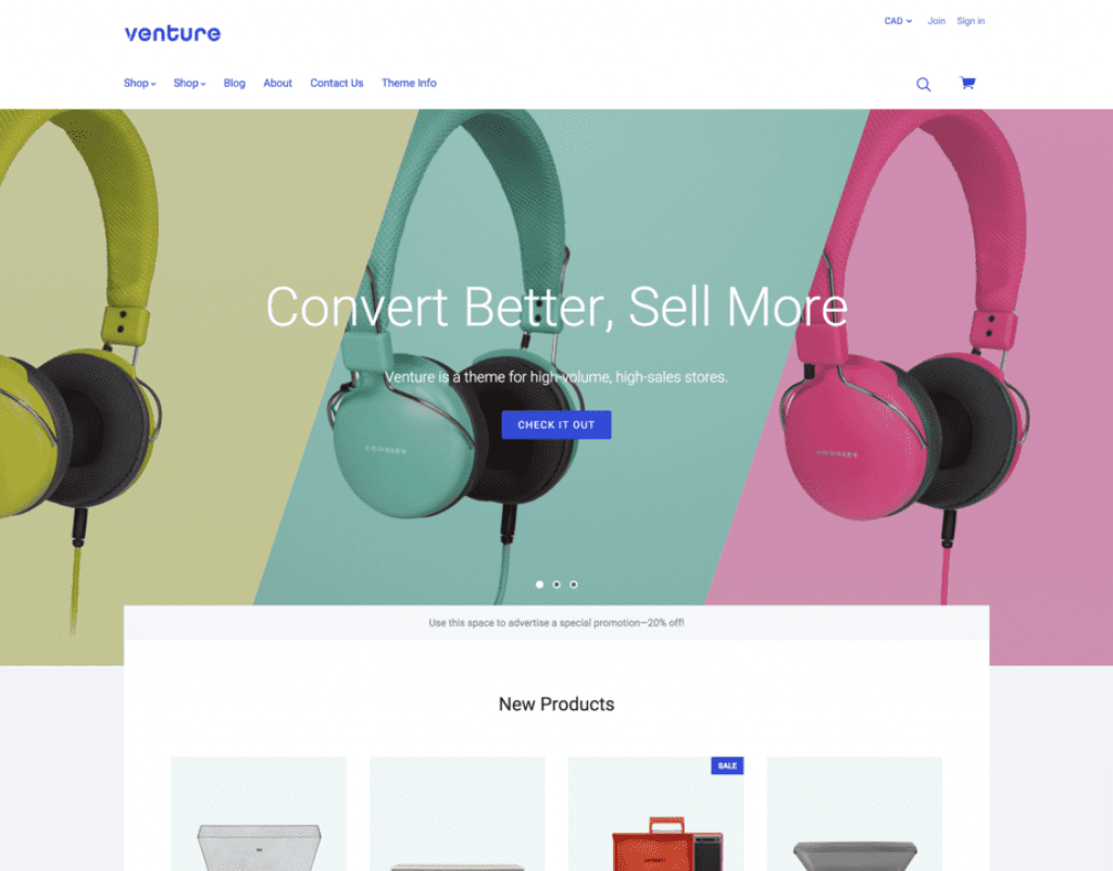 Venture is a theme for fast-growing online stores. It’s ultra-powerful, versatile, and easily supports large catalogs with a wide range of products. In-depth filtering and prominent product reviews lend your store an enterprise feel, while Venture’s modern design remains stylish and sophisticated. Cost of Venture Cool: $195 USD Features Fully Responsive, Frontpage Slideshow, Quick AddtoCart, Product Comparison […]