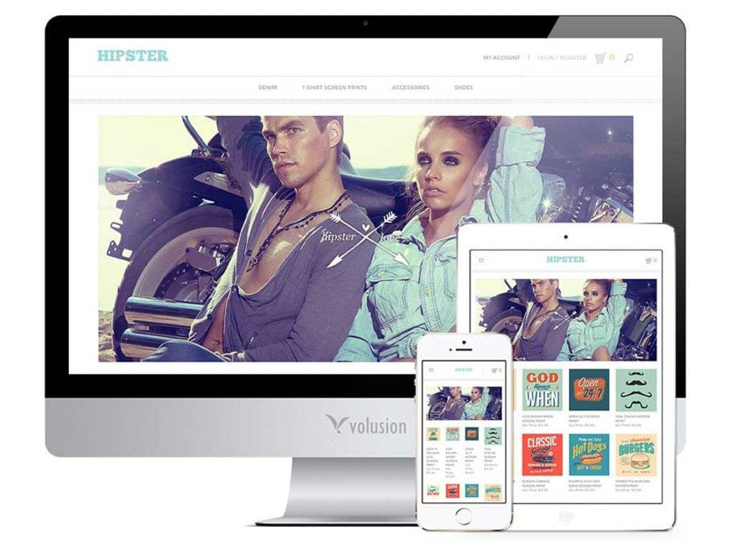 Our new, fully responsive Dapper theme is perfect for any store with a strong brand identity. With confident typography and a minimalist color palette of blacks, whites and greys, strong featured products and category images can stand out prominently. Volusion’s Dapper template costs: $180