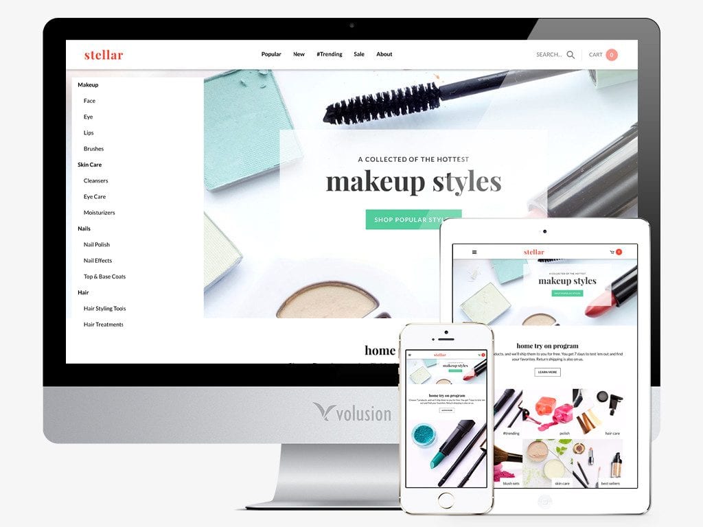 Stellar is a fully responsive, mobile friendly theme with a large left navigation, making it great for sites with a lot of categories. Stellar, is Content Builder enabled, making it easy to customize and maintain. Volusion’s Stellar template costs: $180