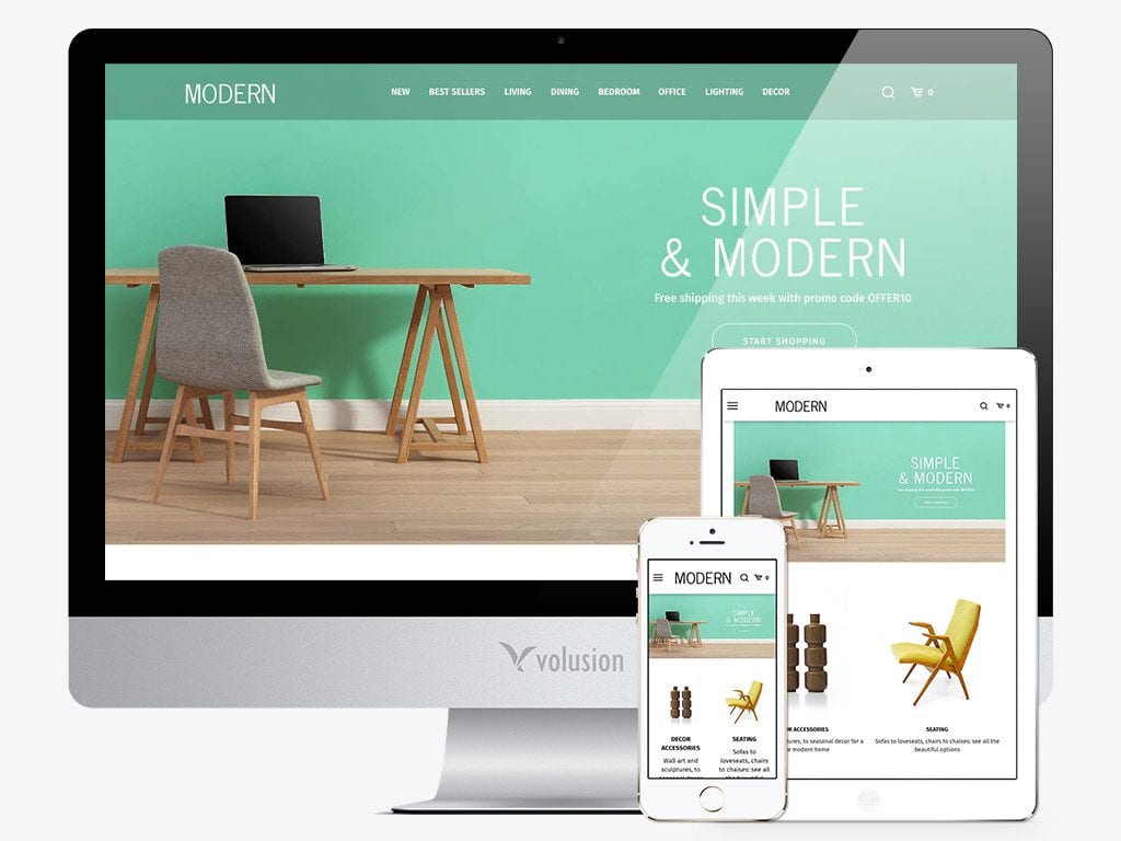 Modern is a fully responsive, mobile friendly clean, minimal theme. Modern, is Content Builder enabled, making it easy to customize and maintain. Volusion’s Modern template costs: $180