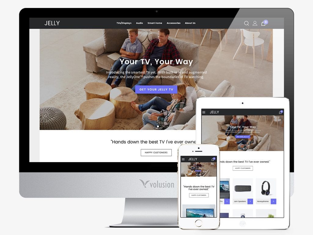 A new fully responsive and mobile friendly theme, Jelly gives users a dynamic viewing experience with powerful full-sized images. Jelly, is Content Builder enabled, making it easy to customize and maintain. Volusion’s Jelly template costs: $180