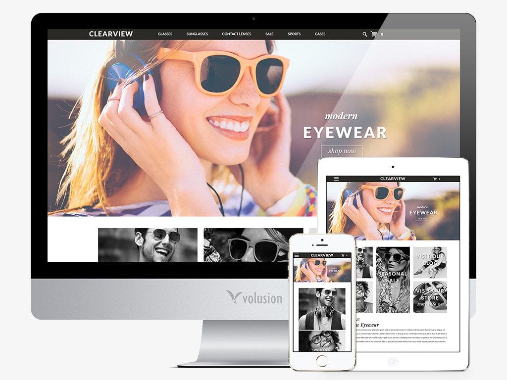 A versatile and stylish business theme, Clearview is perfect for any store with a contemporary sensibility. The full-width header image allows the brand identity to be the standout of the homepage, and the minimalist navigation offers a streamlined appearance. Volusion’s Clearview template costs: $180