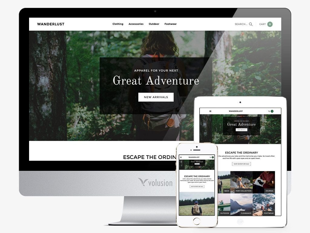 Wanderlust is a fully responsive, mobile friendly clean, minimal theme. Wanderlust, is Content Builder enabled, making it easy to customize and maintain. Volusion’s Wanderlust template costs: $180