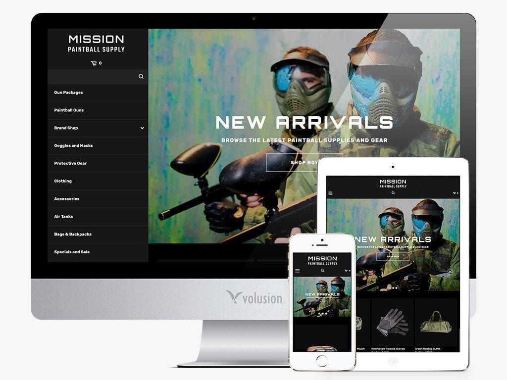 Mission is a fully-responsive Volusion theme. It features bold styling and a flexible left navigation with plenty of space for a variety of categories. Mission is perfect for retailers who want to allow strong and powerful featured product images to be the main focus of their website. Volusion’s Mission template costs: Free