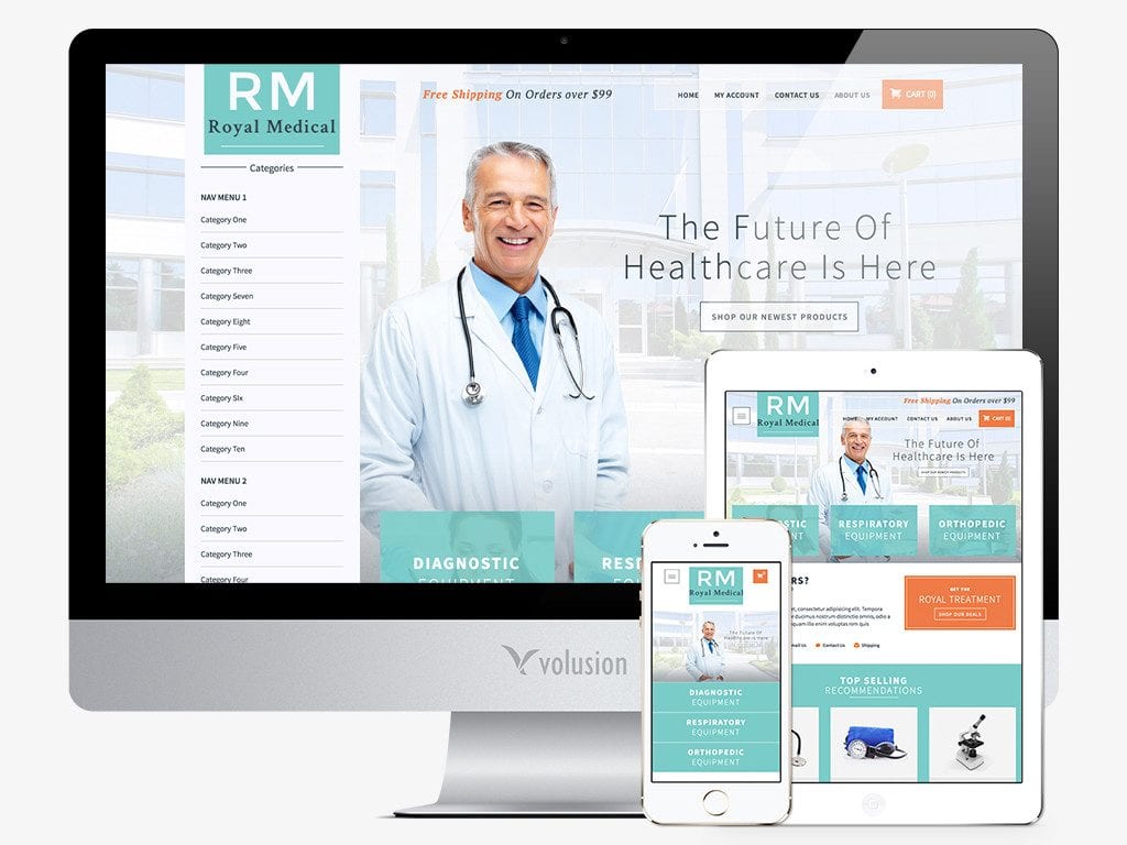 Our Royal theme is perfect for any store looking to provide customers with vital information on the homepage without appearing overwhelming or cluttered. The accent colors are both cheerful and calming, and the clean product navigation help your shoppers find what they need efficiently. Volusion’s Royal template costs: $180