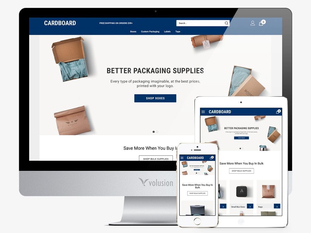 A new fully responsive and mobile friendly theme, Cardboard gives users a dynamic viewing experience with powerful full-sized images. Cardboard, is Content Builder enabled, making it easy to customize and maintain. Volusion’s Cardboard template costs: $180
