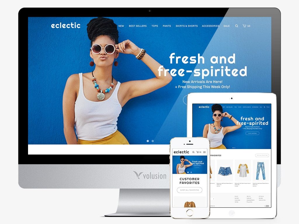 Eclectic is a brand new, fully-responsive and mobile compatible theme from Volusions designers. Light and polished, this modern theme is perfect for any sophisticated store. Volusion’s Eclectic template costs: Free