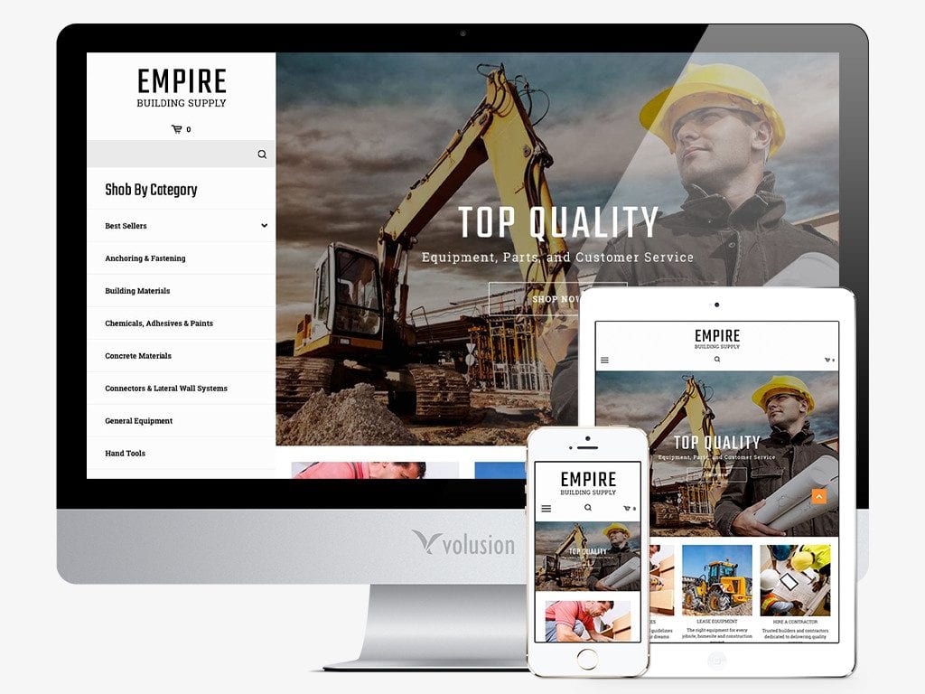Empire is a fully responsive, mobile friendly theme with a large left navigation, making it great for sites with a lot of categories. Empire, is Content Builder enabled, making it easy to customize and maintain. Volusion’s Empire template costs: $180