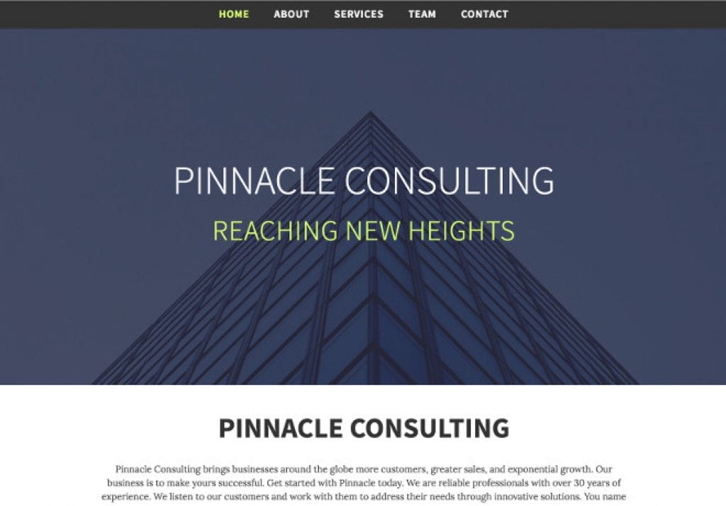 Yola’s Pinnacle is a sleek, professional template featuring a modern color scheme, large banner, and sophisticated font pairings. It is polished, yet simple to modify and make your own to match the style of your business.