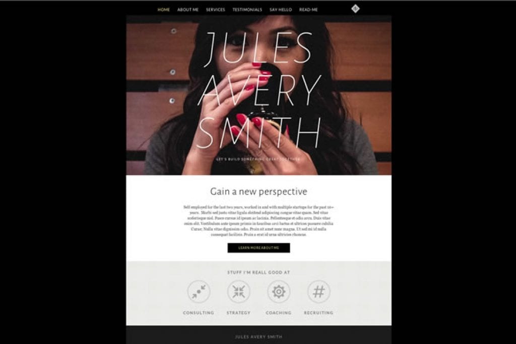 Yola’s Vanguard is a polished consultant-style template that is great for contractor, start-up, photography or portfolio websites. This template offers a modern aesthetic with a continuous scroll flow that provides a unique visual presentation.