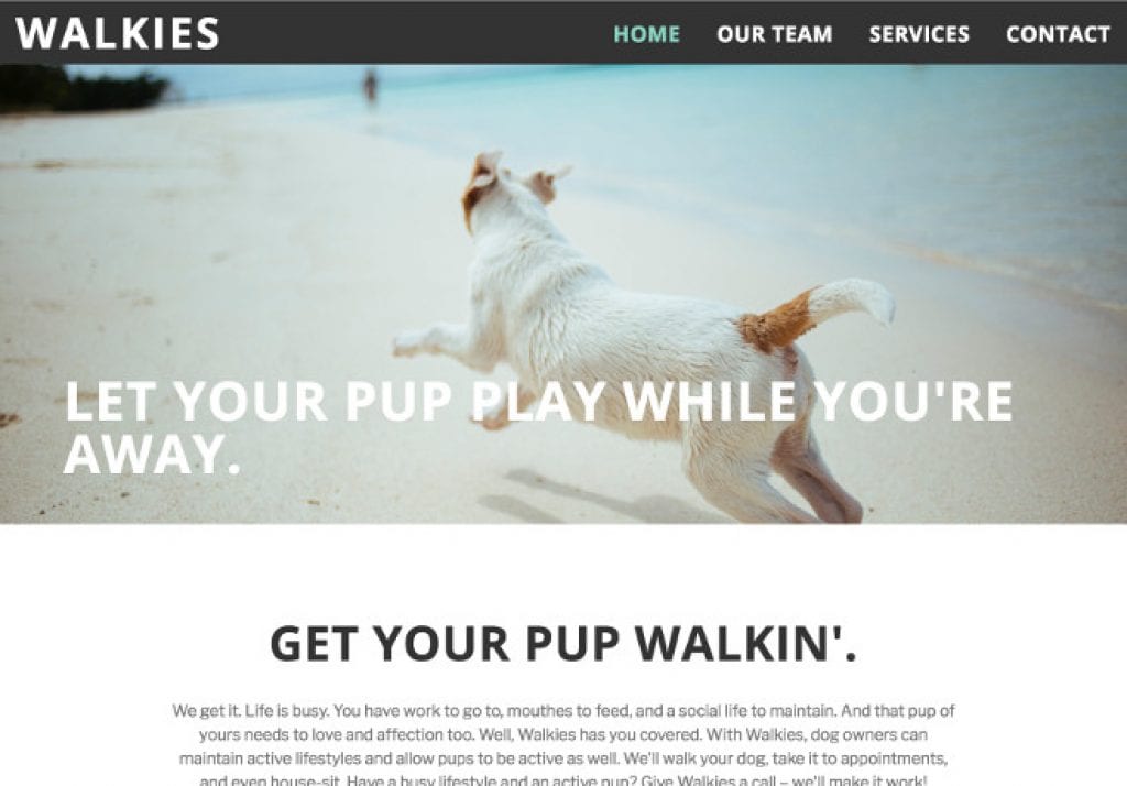 Yola’s Walkies is a fun, versatile template featuring a large banner, multiple font-weights, and the means to highlight your own personal branding. It is fun and easy to modify and make your own to match the style of your business.