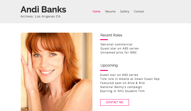 Kickstart your acting career with this young and fresh website template. This is the ideal place to showcase your headshots, production stills, and resume. Start editing to create a professional portfolio with creative flair!