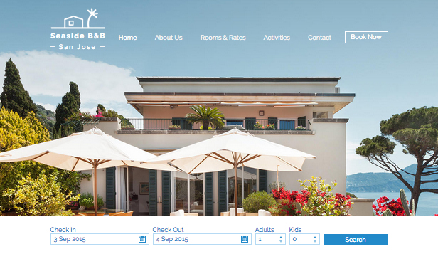 Featuring enticing images and easy-to-edit layout, this is the perfect website template for anyone wishing to attract guests to their beachside or island guesthouse. Visitors can browse images of your facilities, check out your rates, and make reservations with ease. Manage your hotel bookings with ease using the Wix Hotels, where you can customize room details and much more.