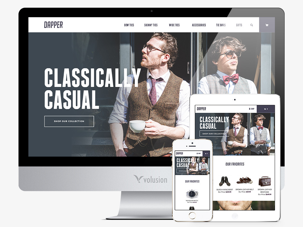 Our new, fully responsive Dapper theme is perfect for any store with a strong brand identity. With confident typography and a minimalist color palette of blacks, whites and greys, strong featured products and category images can stand out prominently.