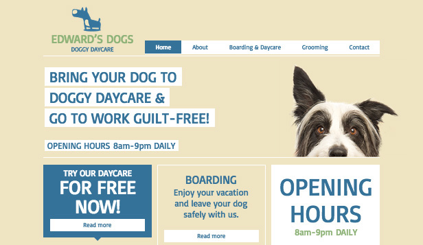 This template’s playful vibe makes it ideal for businesses in the pet care industry. Add text and upload photos to advertise your services, rates, and facilities. Start editing to create a vibrant website that stands out from the crowd!