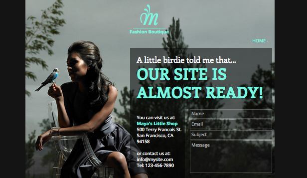 A chic one-page template to tell the world that your site is coming soon. Simply add your contact information, customize the background, and adjust the color palette. When you’re ready, add more pages and create a full site.