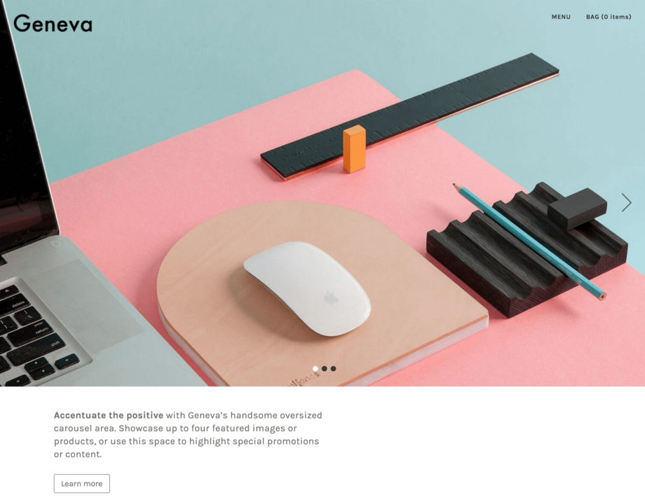 Geneva is a striking and contemporary theme designed to showcase top-shelf products and curated boutique collections. With its editorial look and feel, long scroll feature, and focus on large, high-resolution images, Geneva lets your products tell your brand’s story in arresting detail.