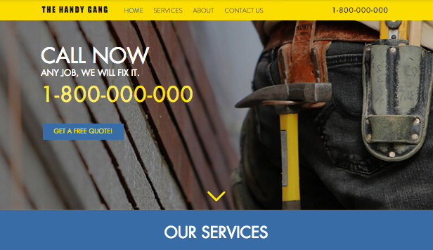 Rugged, yet practical, this template is perfect for the repairman or handyman looking to promote their services . Showcase your specialities and highlight positive customer reviews to reel in new customers. Simple, clean and easy to edit, this template features stunning parallax design that is sure to impress.