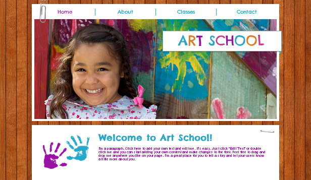 A playful template featuring bright colors, friendly fonts, and a wood paneled background. Advertise your classes and describe your teaching philosophy. Customize the design and add your own photos to share the smiles!