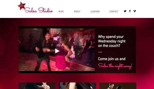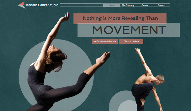 Shine a spotlight on your dance company or studio with this graceful and contemporary template. Upload images and videos to showcase your talents and customize the text to promote classes and upcoming events. Start editing to make the leap online!