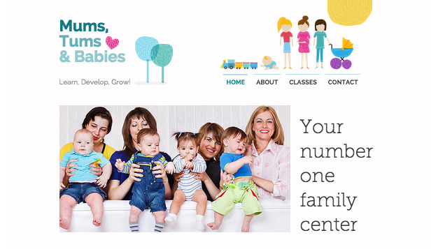 A family friendly theme combining playful illustrations and soft colors to make a website template perfect for community centers and groups. With plenty of space to add information about what’s happening in your center, this template is great for anywhere with a lot going on. Simply edit the text and upload photos to start gathering an online presence and watch as your community grows!