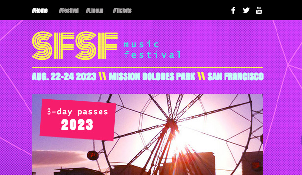 Shout about the hottest events with this vibrant music festival website template. With ample space to offer information, list your festival lineup, and even include a promotional video, it has never been easier to get your festival online. Simply click edit to get started and create a website as unforgettable as your festival!