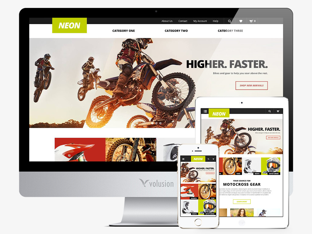 Our new, fully responsive Neon theme is the perfect design for any high-energy store. The rousing pops of bright colors provoke excitement and direct attention toward bold featured category images, while the intuitive layout keeps user flow running smoothly. If youre looking for a compelling yet accessible store theme, search no further: Neon is sure to catch anyones eye.