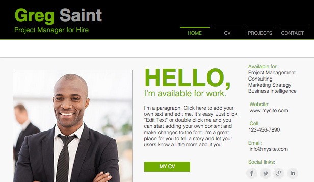 Far more than an online CV, this slick template allows you to showcase your projects, share your contact information, and provide links to your social media platforms. Customize the color scheme, layout, and design to express your personal style.