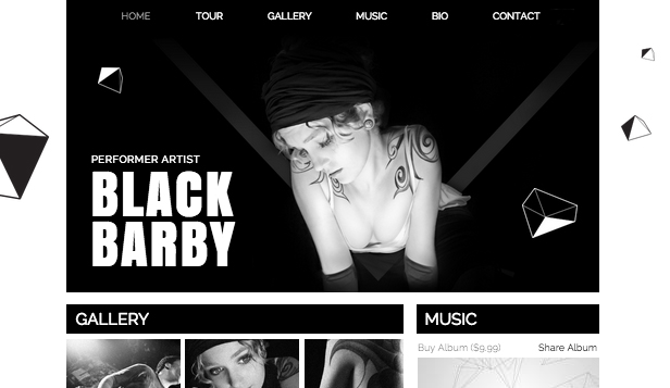 Take the stage with this edgy website template. Publish your tour dates and share videos, songs, and photos with your fans. Customize the design and color scheme to create a hip website that represents your sound!