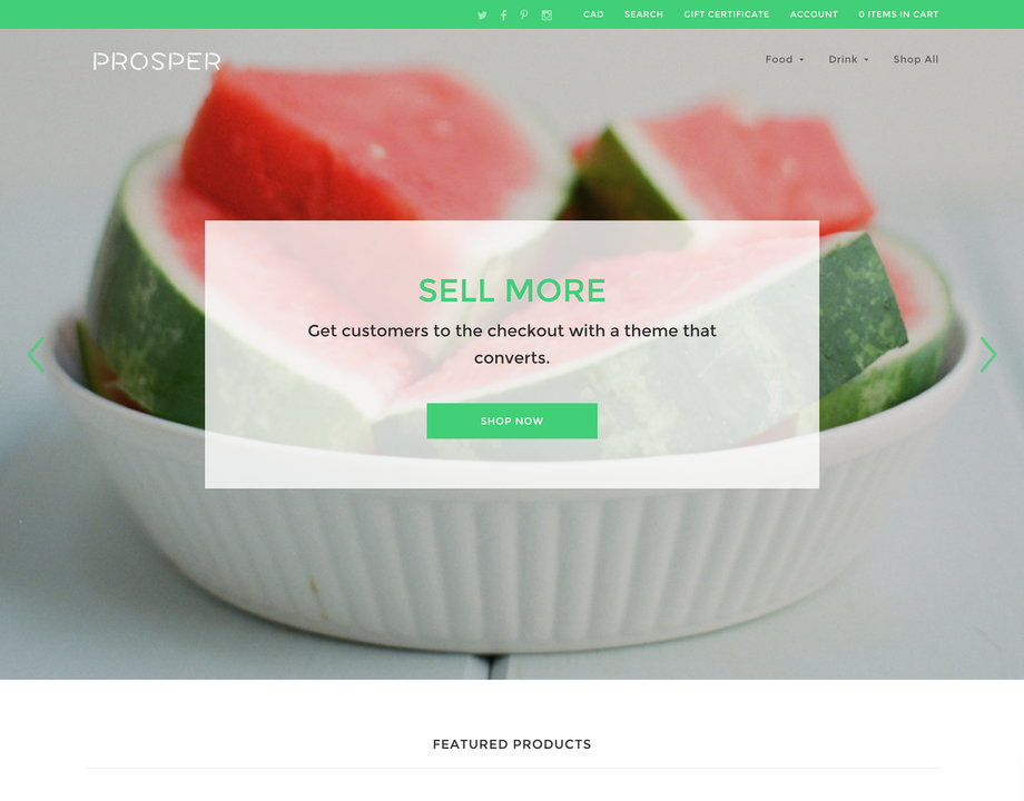 Prosper is the kind of theme you build your business around. Designed to scale, it is defined by its stylish, long-format homepage, engaging product presentation, and beautiful typography. Accessible to both merchants and shoppers, Prosper is quick to set up and offers an array of branding and customization options.
