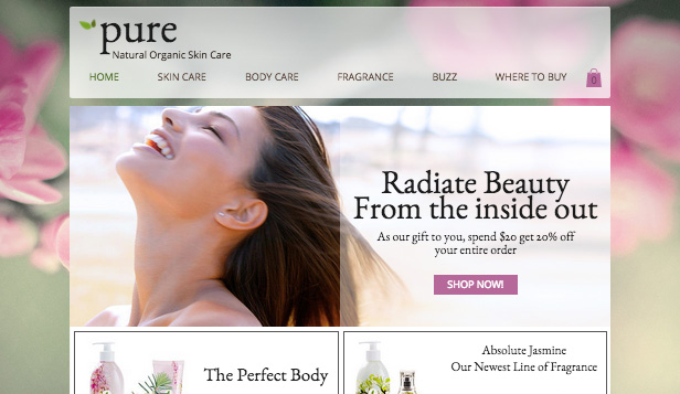 Natural colors and a floral background make this a perfect template for your line of organic skincare products. Tell the story of your brand, showcase your goods in multiple galleries, and direct customers to your outlets. Start editing to build your online presence!