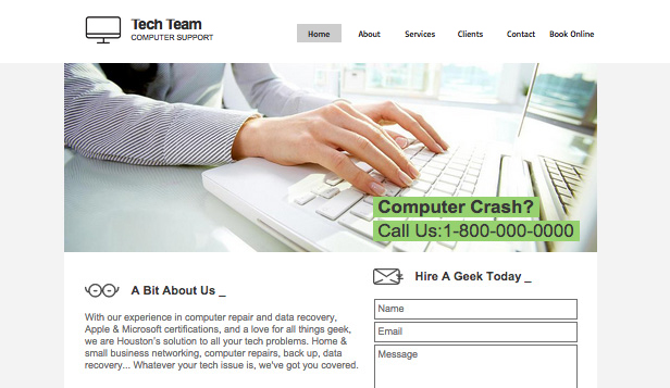 Communicate the professional standards of your computer support company with this sharp website template. Share photos of your team members and customize the text to highlight your services and rates. Start editing to craft a customized website that stands out from the crowd.