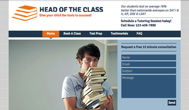 A smart theme featuring educational graphics and a polished design. Perfect for tutoring companies seeking an online presence, this template gives you plenty of space to showcase testimonials and highlight your programs’ unique features.